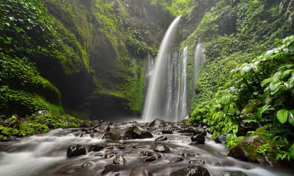 Sendang Gile Waterfall: An easy-access, towering waterfall with refreshing mountain water.